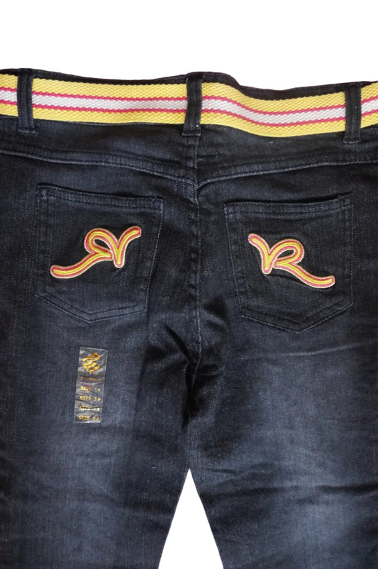 Vintage Red and Gold Flames Low Rise Jeans - Size 1