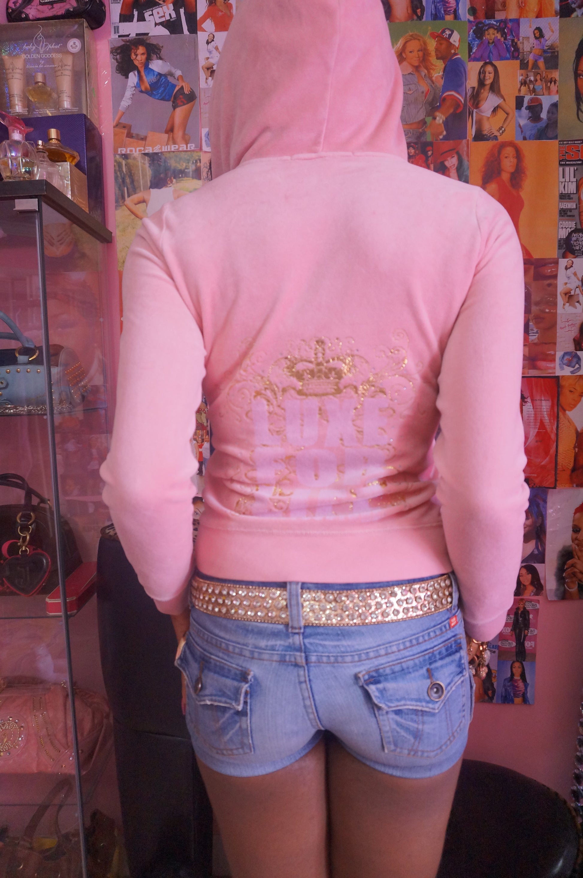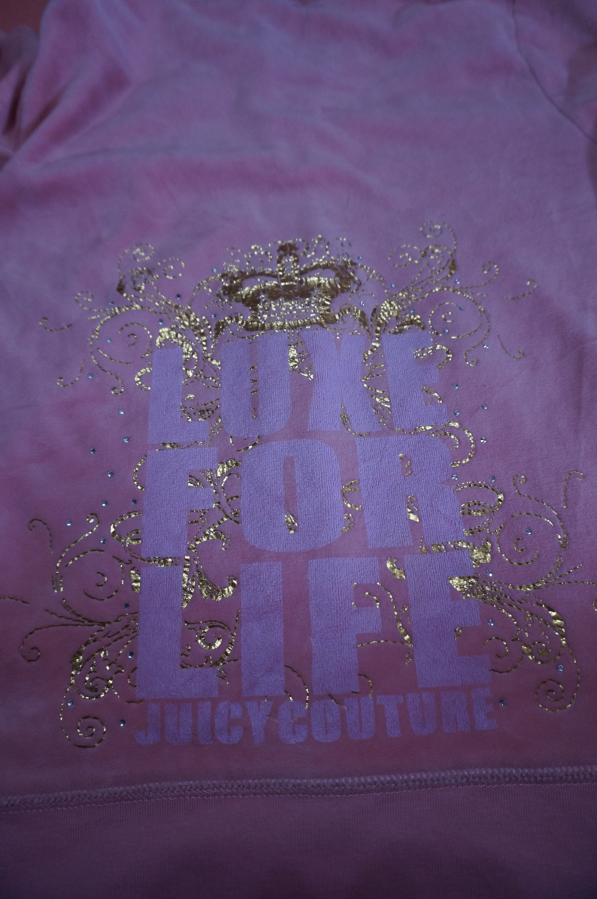 This one is supreme luxurious 💅🏾. The perfect shade of pink makes this Juicy Couture velour track jacket so pretty. Ready to hop in your soft girl era? Add this top to check out ASAP. From the J zipper pendant and the print at the back that spell out Luxe For Life Juicy Couture,
