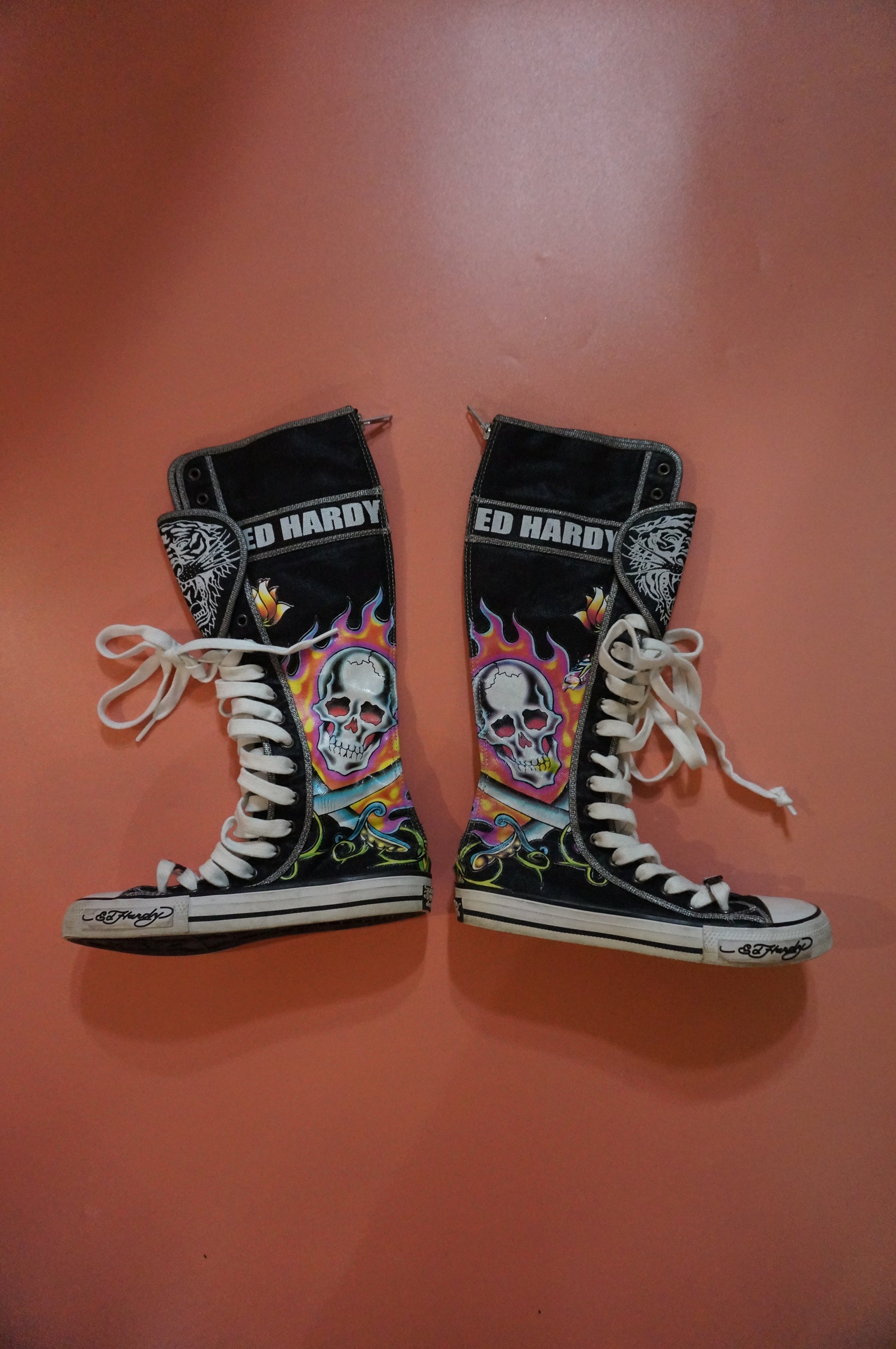 RARE Ed hardy knee high lace up sneakers. Iconic AF. All over tattoo print. Perfect statement shoe.