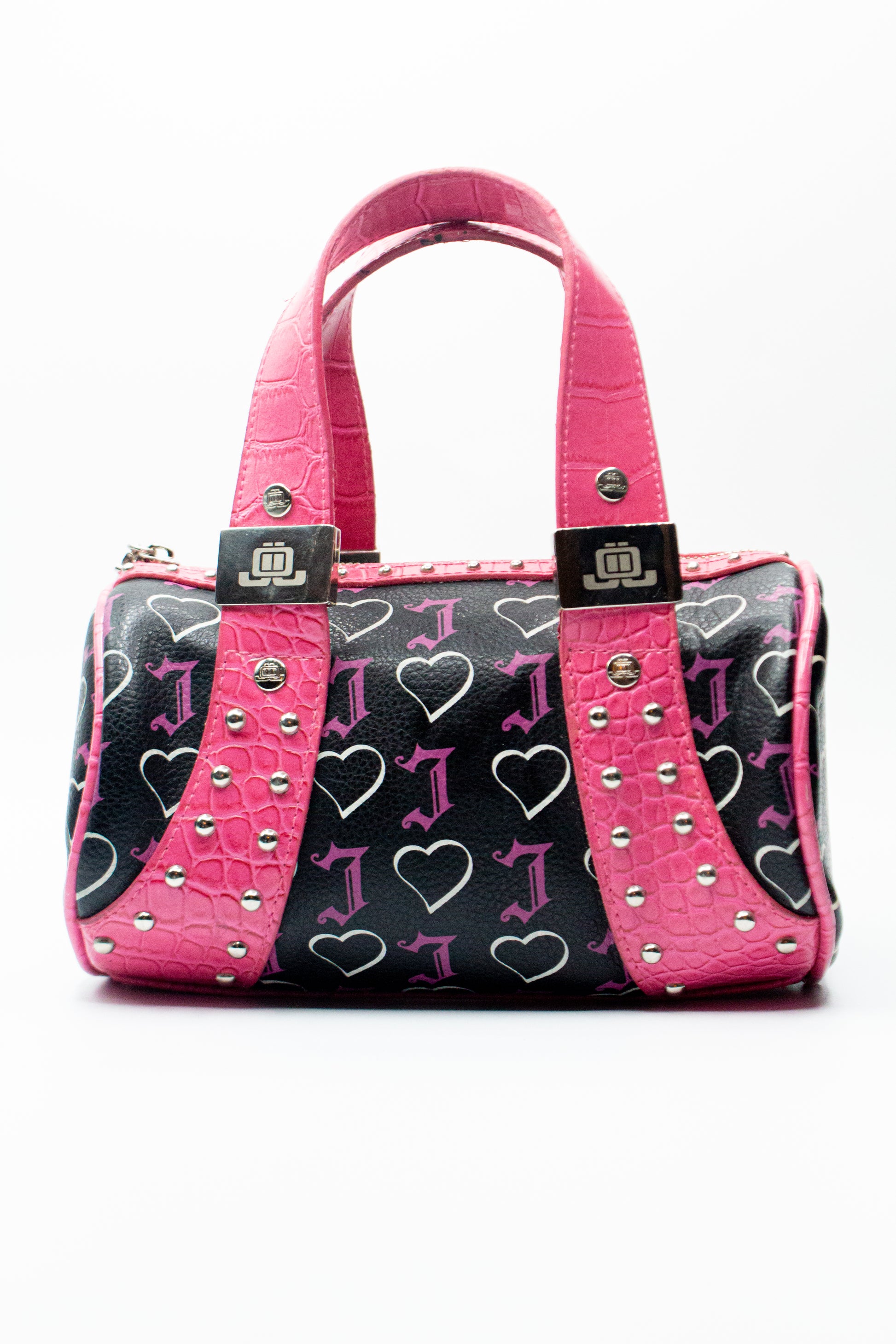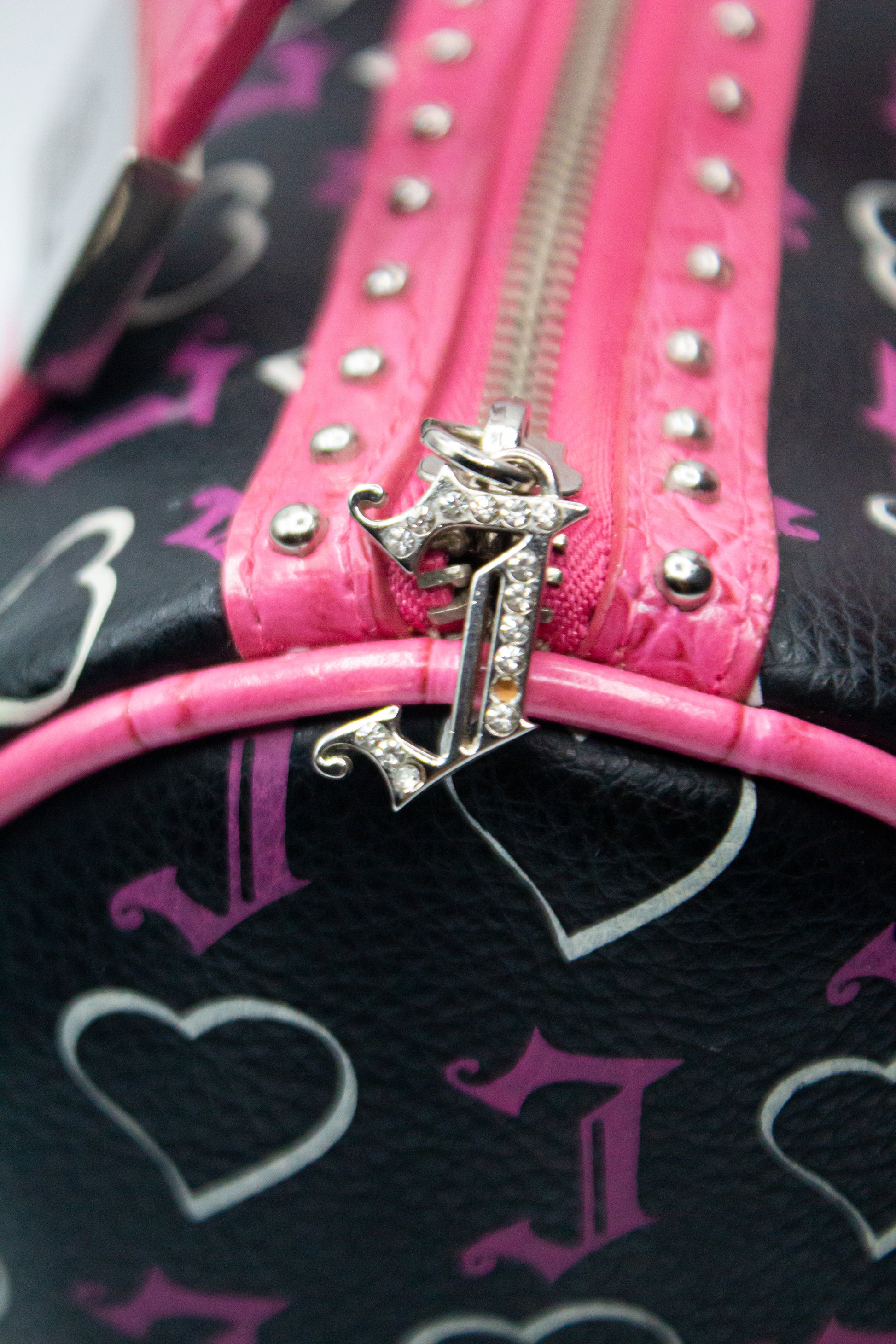 This black and pink monogram is just so gorg! The hearts and the J's printed on the bag , and the silver metal buckles with the JLO logo engraved.
