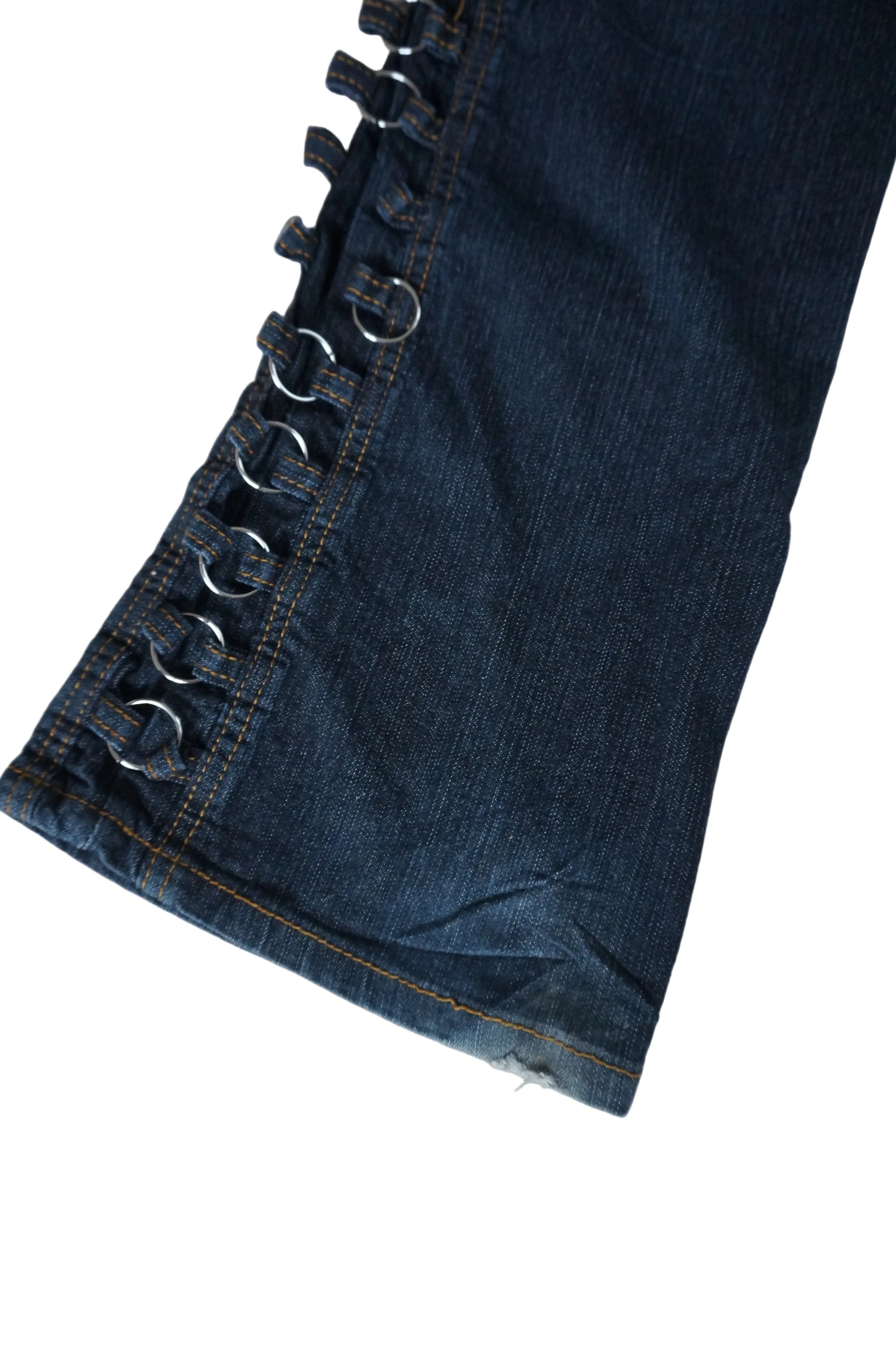 Iconic vintage pants by Hot Jeans with rings each side and a denim grommet belt. They are the kind of jeans that you will constantly want to wear because they are so versatile and comfy.