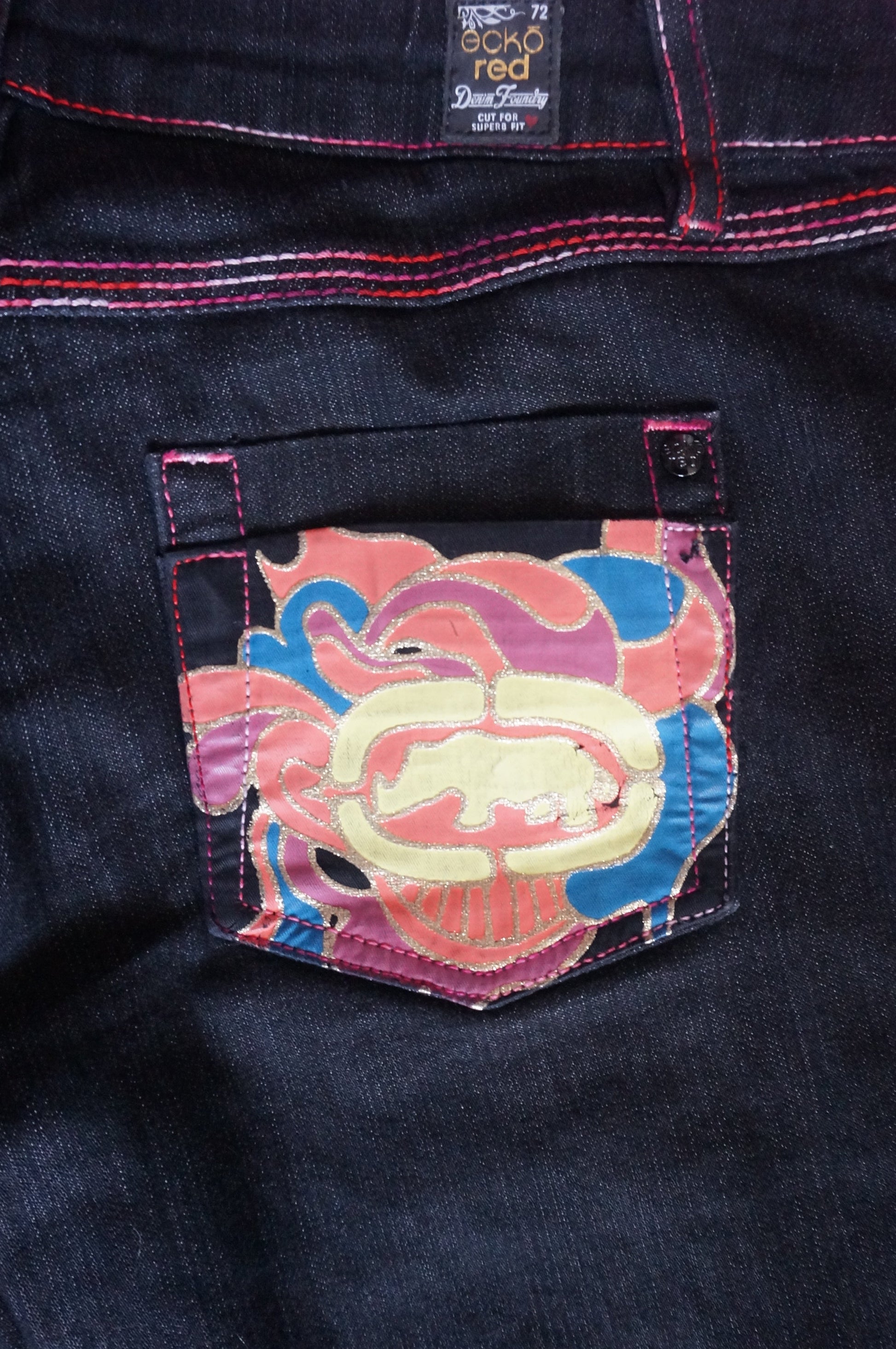 Archive Ecko Red Black pant with multicolour details on the back pocket with the infamous rhino logo.