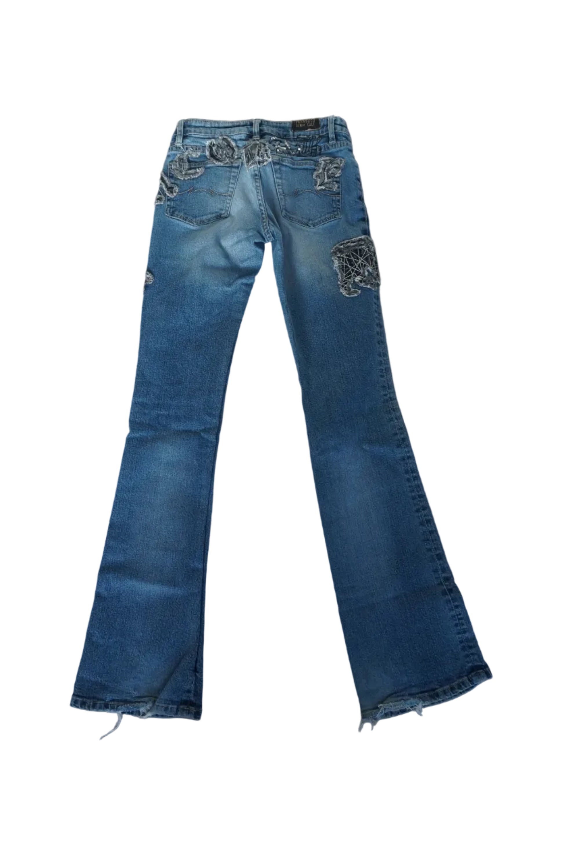 Archive low rise Parasuco jeans with patches that spell out Parasuco Babe.