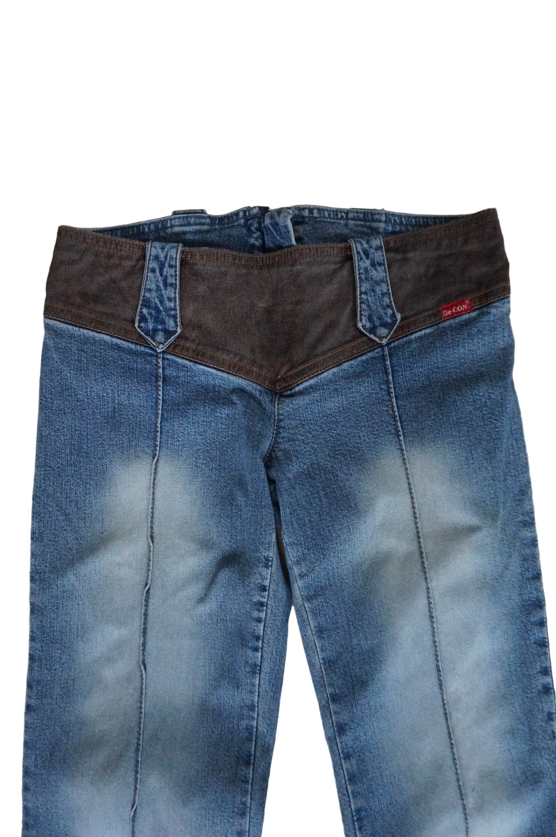 These vintage jeans by the brand DeCon are giving western video vixen vibes. They have a chunky brown band around the waist a nice fade to them.