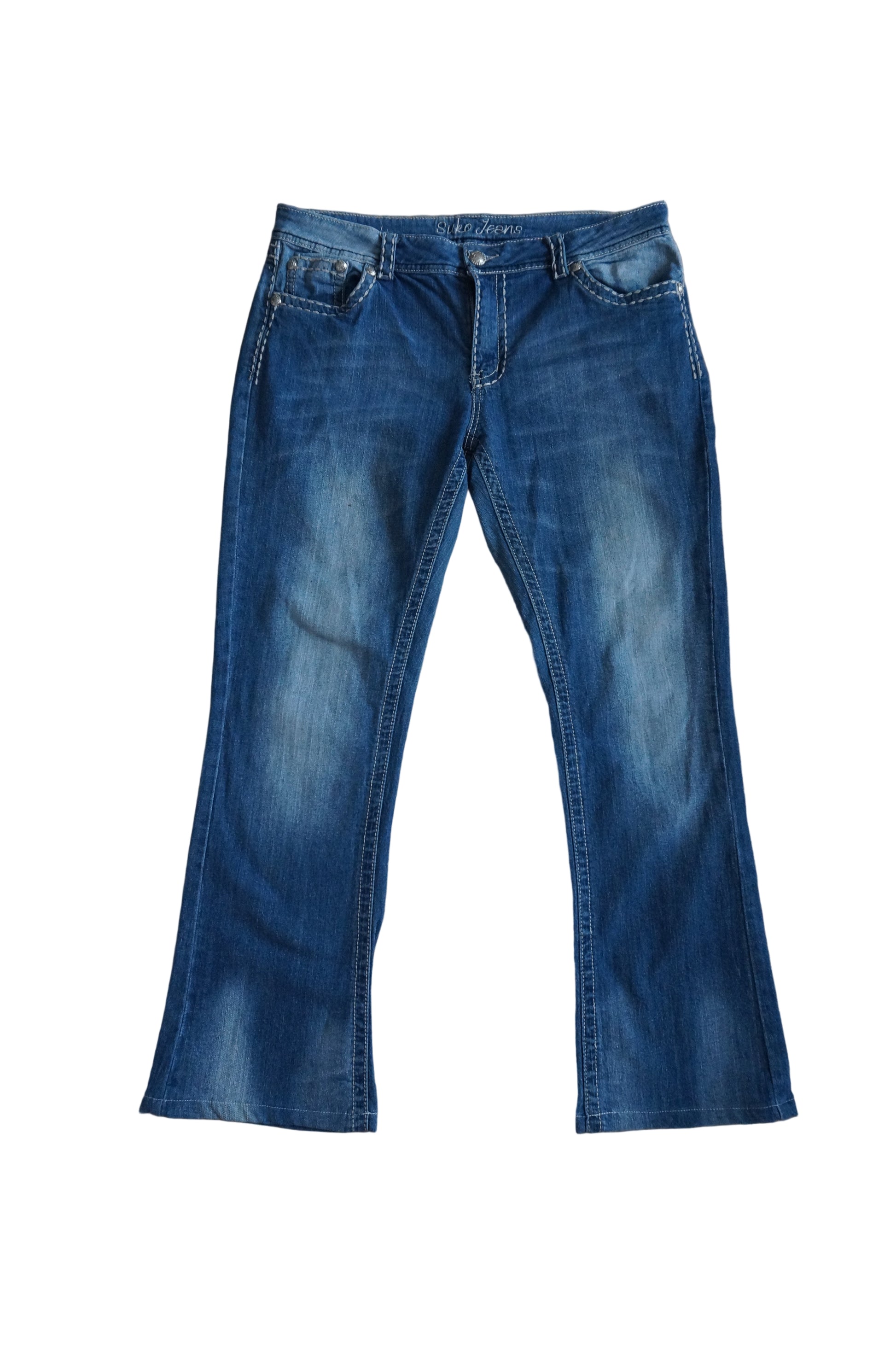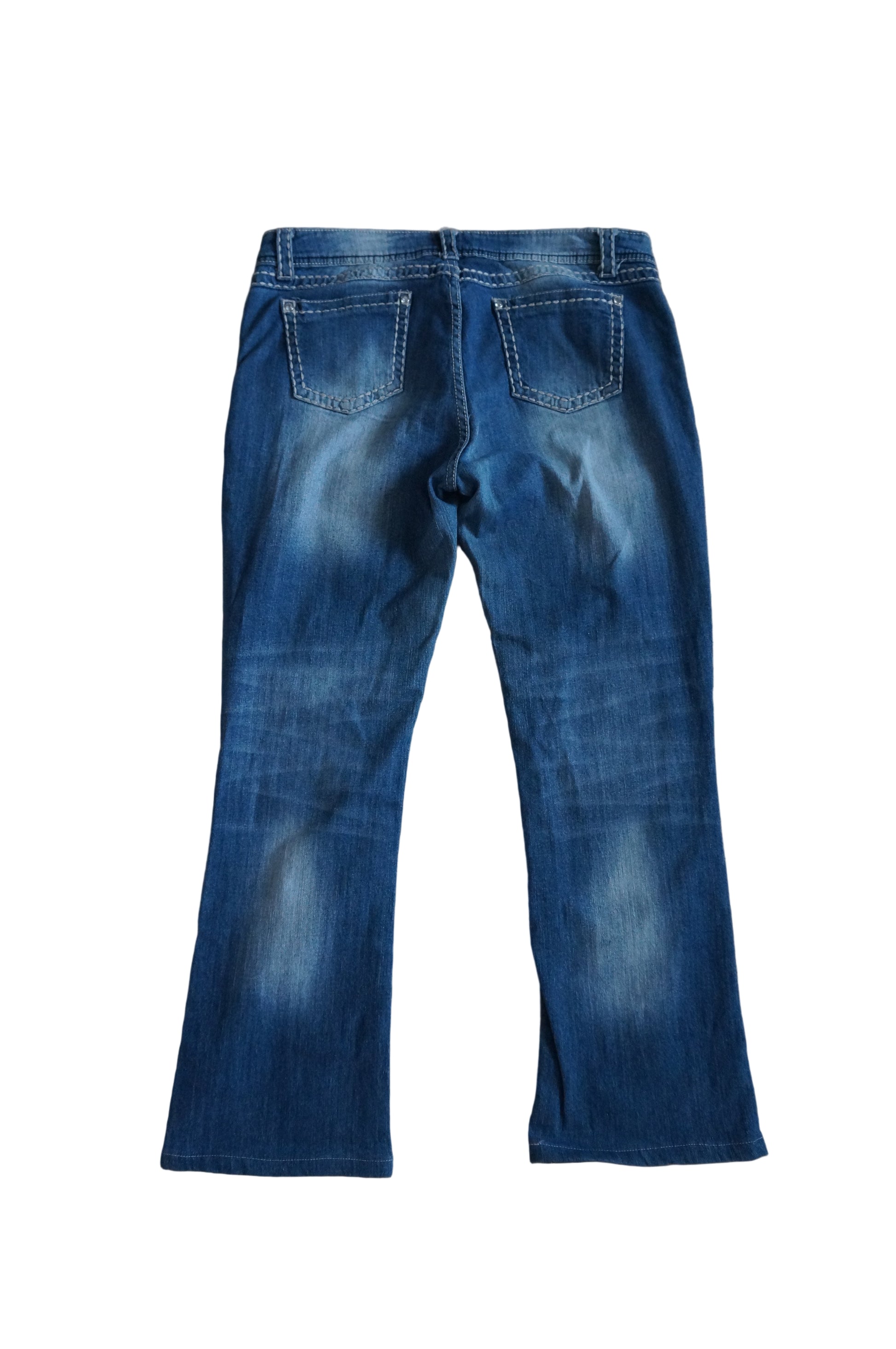 These are so 2000s Baddie coded! The perfect shade of blue denim featuring with stitching and subtle hints of gems on the back pockets and the button closure.